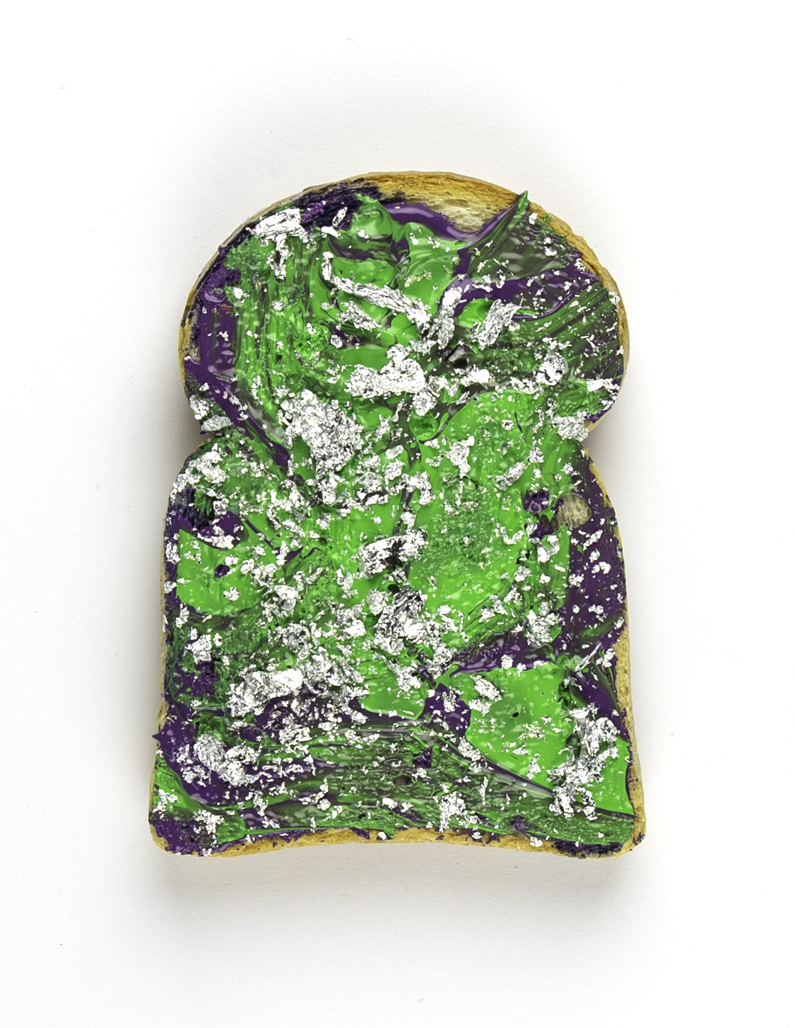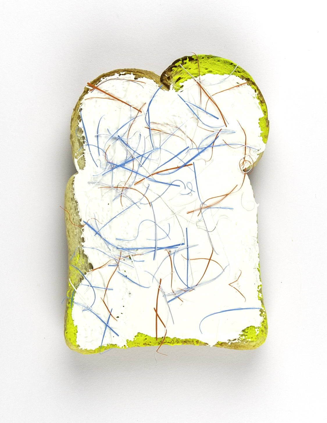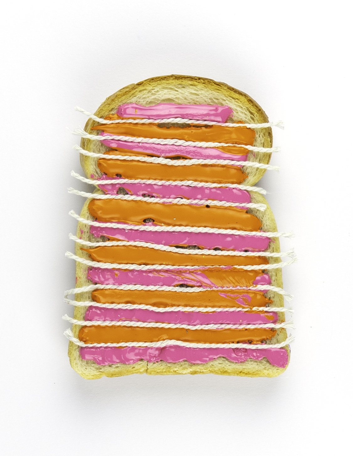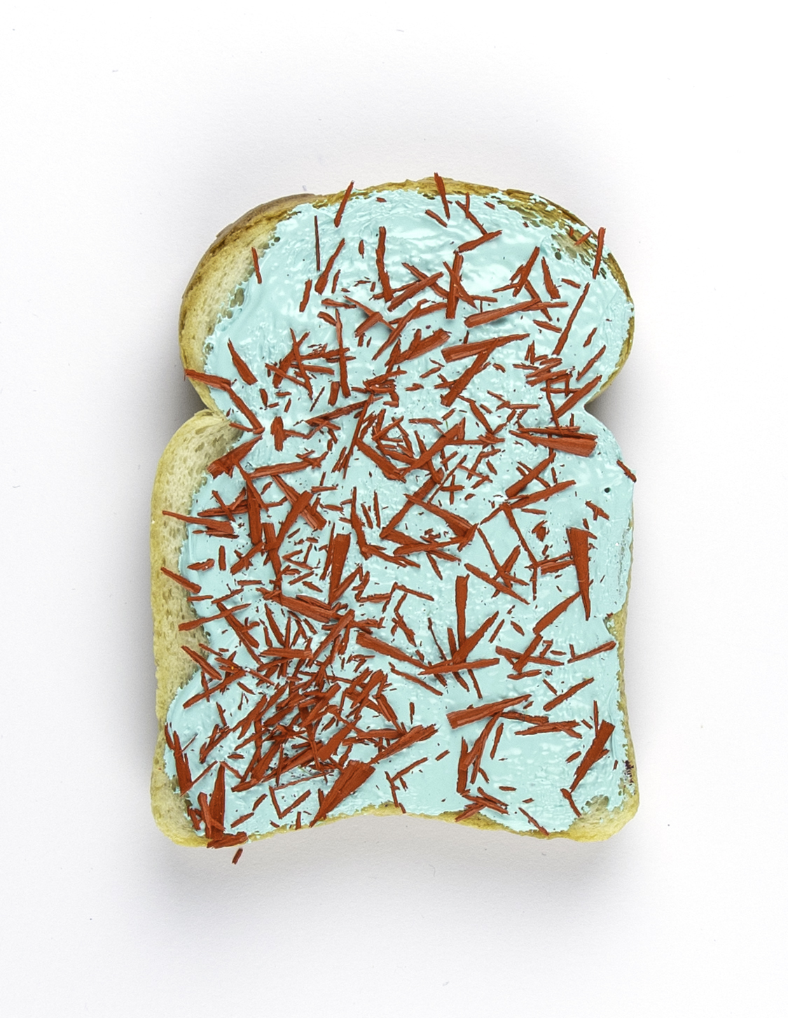 Nieuwe serie Feestboterhammen. Gesmeerd op gedroogd, geïmpregneerd brood. De kunst zit in het smeren van de boterham. Niet bedoeld om op te eten (of slechts één keer).
